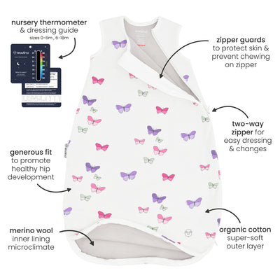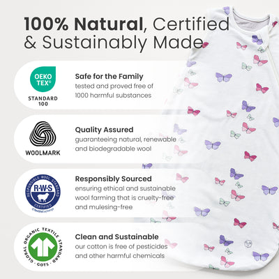 With Woolino, there is no need to worry. The exceptionally breathable Merino wool naturally regulates your baby's body temperature, which helps your child to sleep safely and comfortably through the night. It gives you peace of mind and a good night's sleep, too.