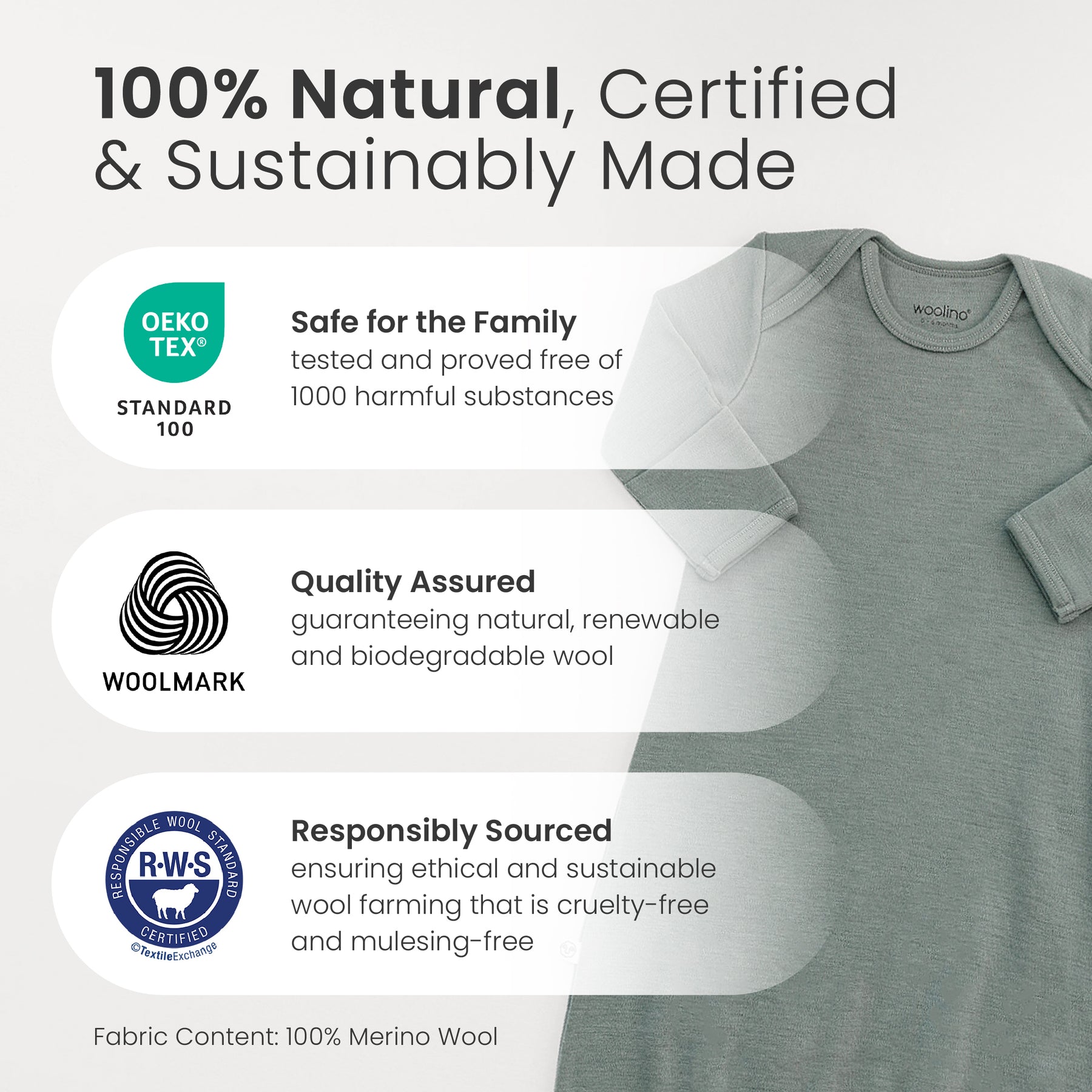 Nighttime accidents happen, but when merino wool gets wet, it retains its warming properties. Your baby will have a comfortable night’s sleep whatever the circumstances.